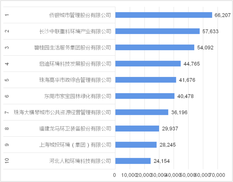 2、上半年环卫市场化签约合同年化金额前十甲名单