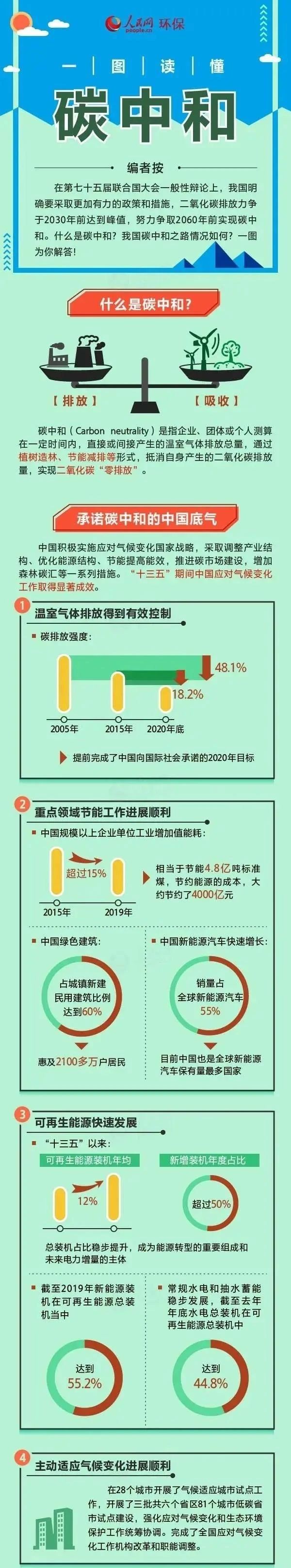 去年9月,我国在联合国大会上提出了要“采取更有力的政策和措施,二氧化碳排放力争于2030年前达到峰值,努力争取2060年前实现碳中和”。