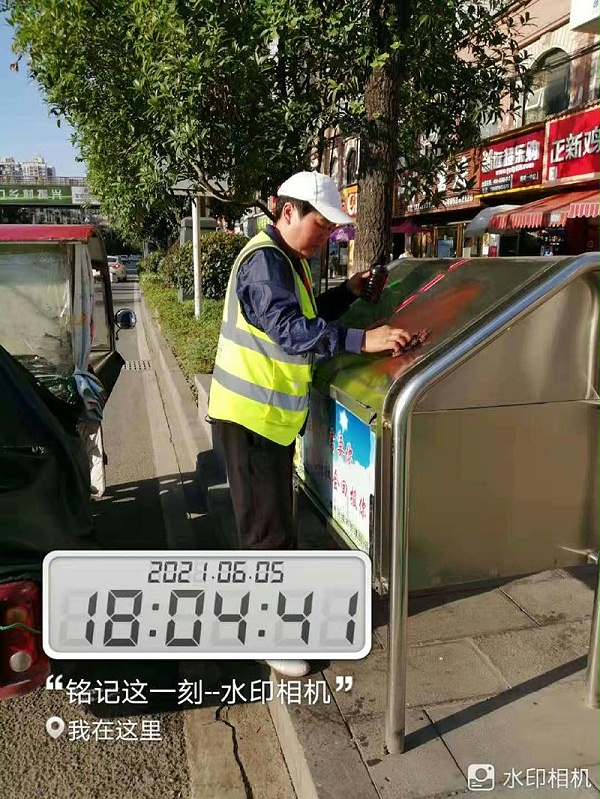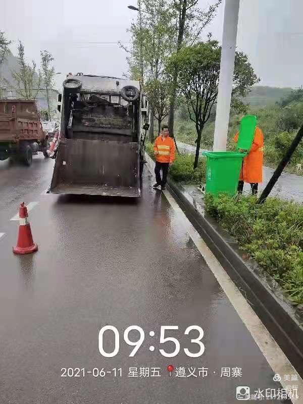 四、对垃圾容器进行清洗,及时清掏容器里残留垃圾,杜绝垃圾容器产生异味。